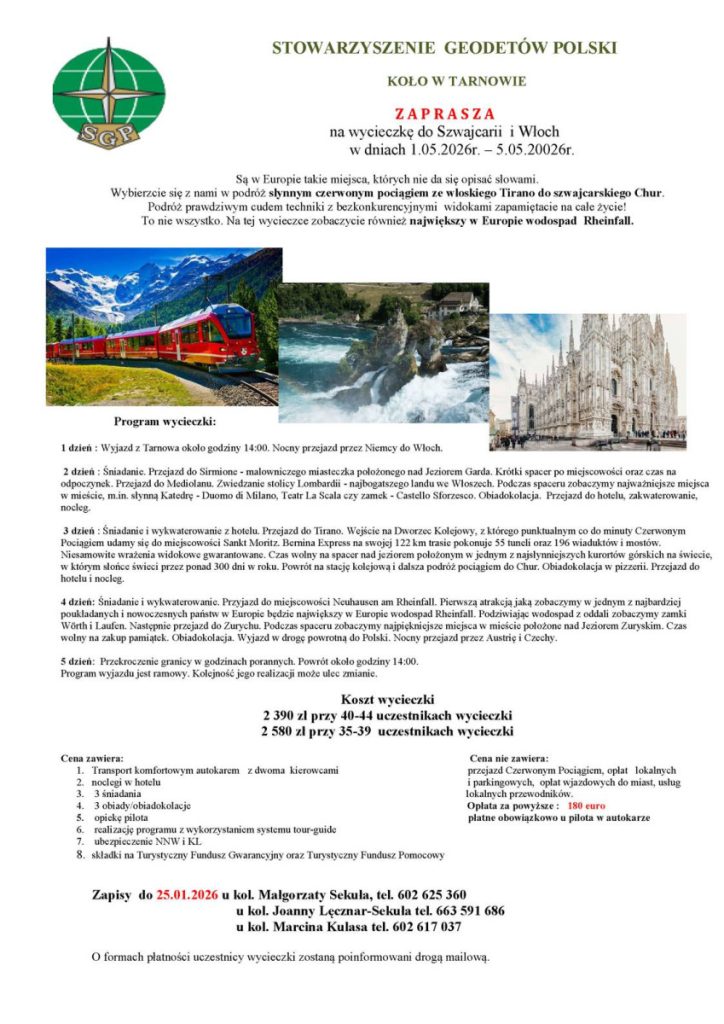 Wycieczka Włochy – Szwajcaria 1-5.05.2026